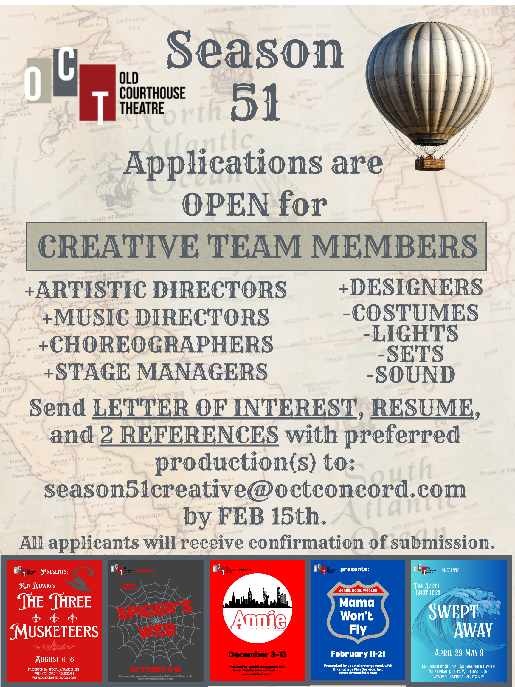 Each season consists of 5 Main Stage productions, 2 youth productions and 2 to 3 productions in the newly renovated Wilson Family Black Box. We are located in the heart of Concord's historic districts and downtown's restaurants and shops. We encourage our patrons to head downtown for a meal before a show or drinks after.