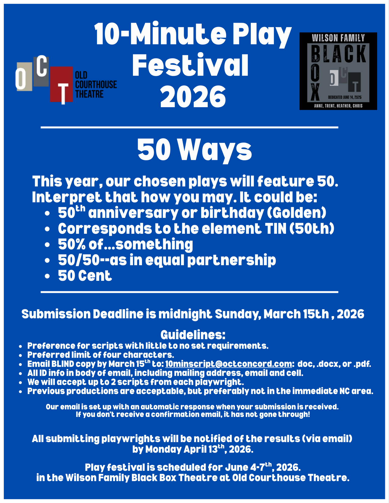Representing the Charlotte, North Carolina region, productions take place at the Old Courthouse Theatre in Concord.